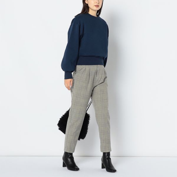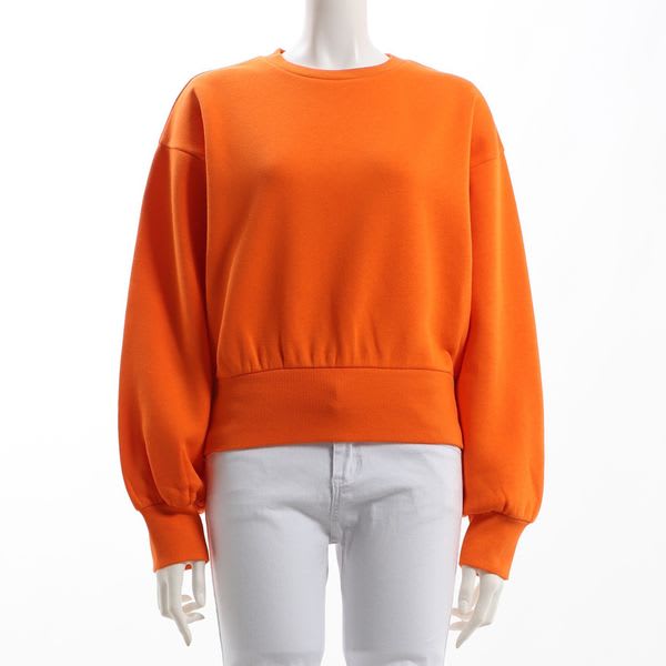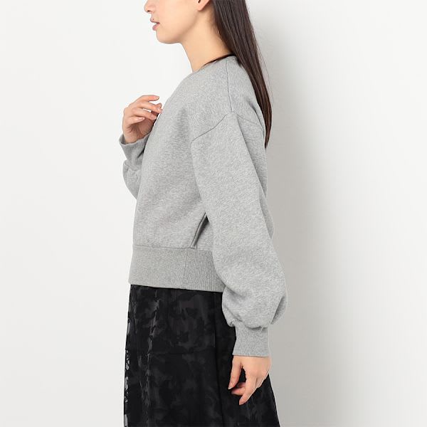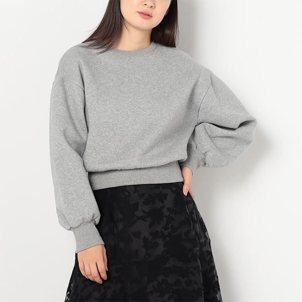 バランスの取りやすいワイド感にこだわった、裏起毛のトレーナー。ボリュームスリーブにコンパクトな丈感など、女性らしさ際立つ抜け感のある雰囲気で仕上げています。袖と裾の太めのリブも、一癖を加えたポイント。ボトムスにはデニムパンツを合わせてカジュアルに、プリーツスカートで女性らしくまとめてもいいですね。
