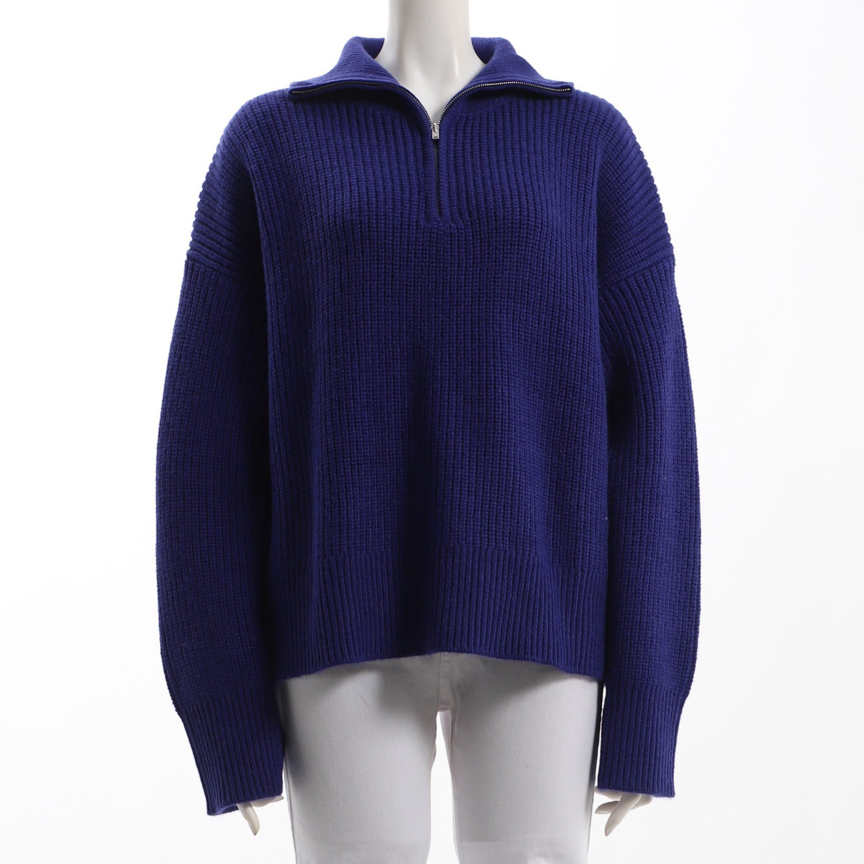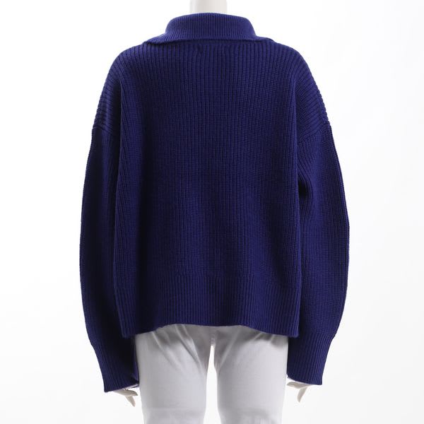 ジップデザインがポイントのニット。プリーツスカートに合わせて女性らしいスタイルに、デニムパンツを合わせてラフなスタイルも素敵ですね。