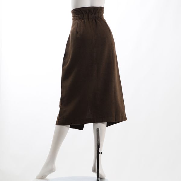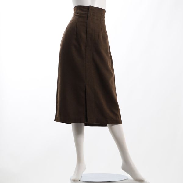 フロントスリットがポイントのハイウエストタイトスカート。トップスにはラウンドネックブラウスを合わせてキレイめに、ざっくりニットでカジュアルにまとめてもいいですね。