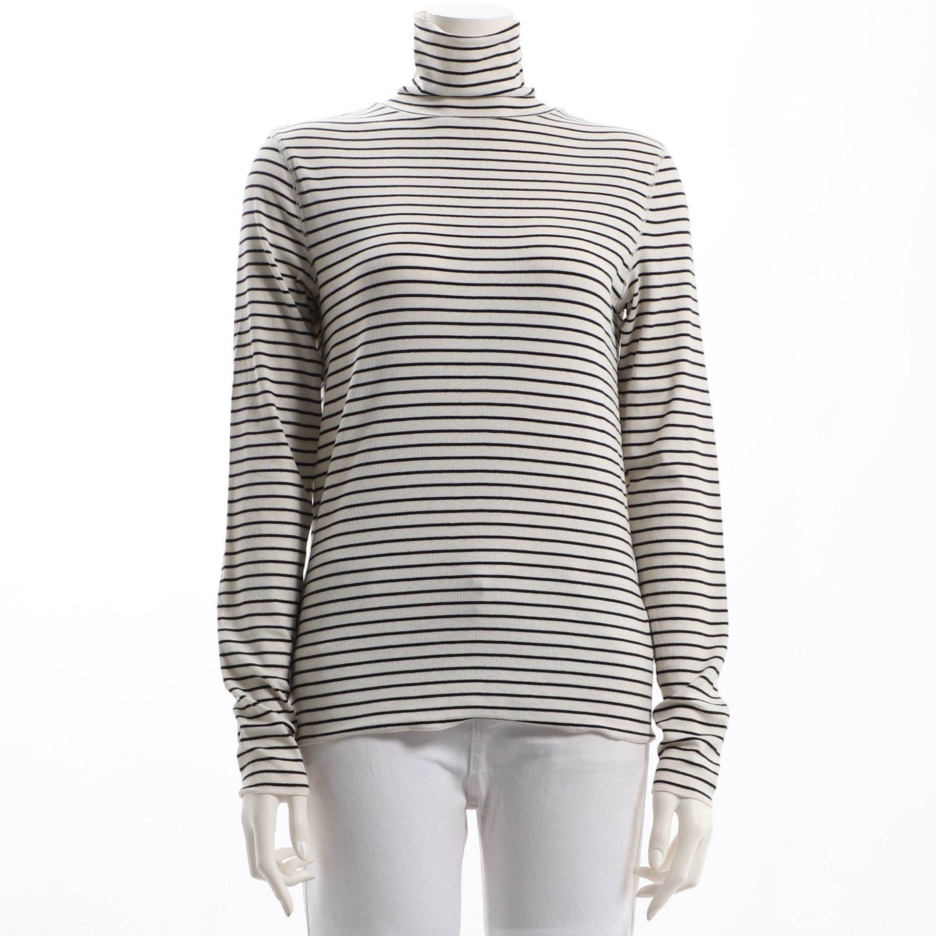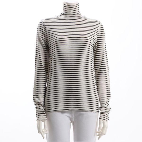 メロウデザインがポイントのタートルネックカットソーです。フレアスカートにバレエシューズを合わせて、女性らしく。デニムパンツにスニーカーを合わせて、カジュアルに着こなしてもステキですね。