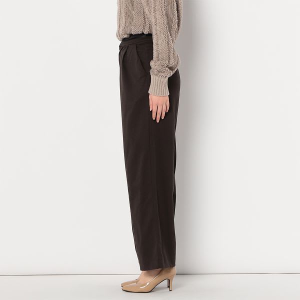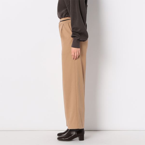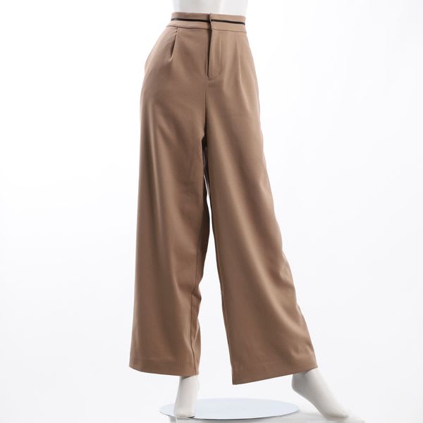 ウエストのバイカラーデザインがポイントのワイドパンツです。トップスにはスキッパーシャツを合わせてスマートに、ざっくりニットでカジュアルにまとめてもいいですね。