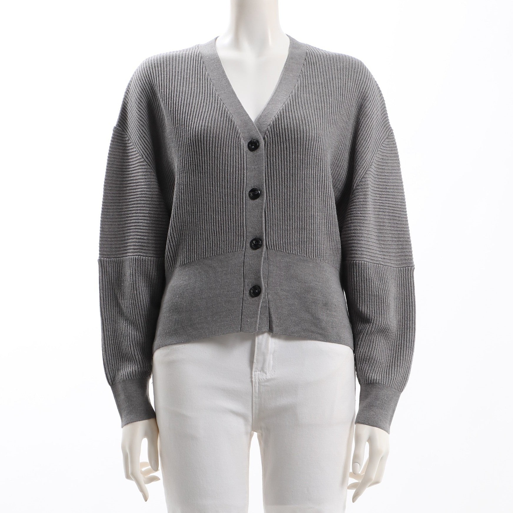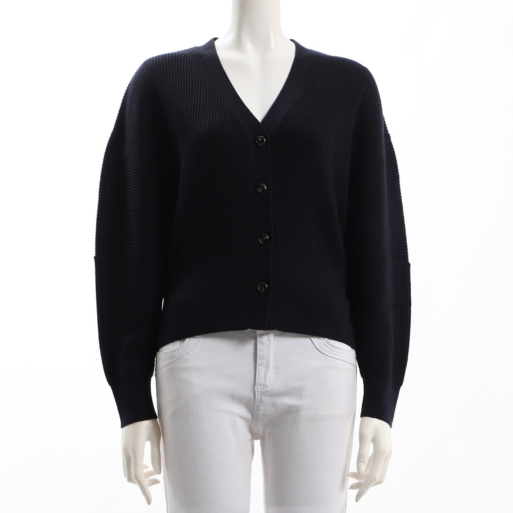袖の切り替えで網目の方向を変えて丸みを出しているのがデザインポイントのカーディガンです。