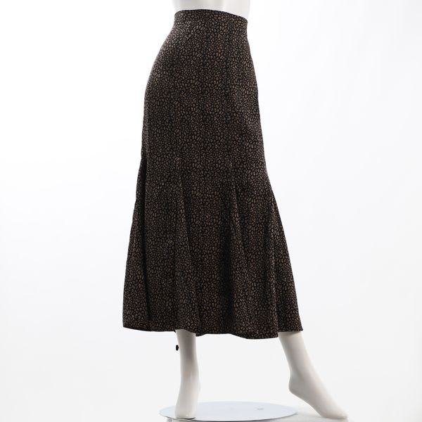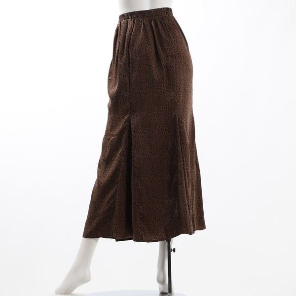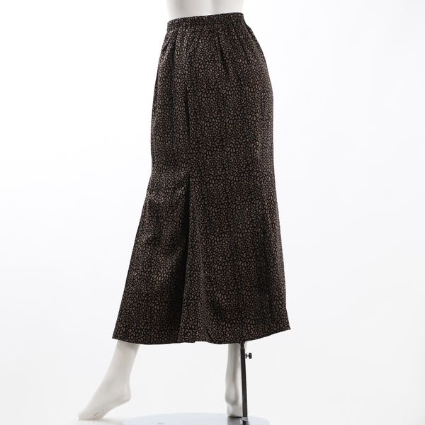 さりげないアニマル柄がポイントのマーメイドスカートです。バックウエストはゴム仕様でストレスフリーな着心地となっております。ハイウエストデザインなのでブラウスやインしてスタイルアップ、ざっくりニットをアウトにしても素敵なコーディネートになります。