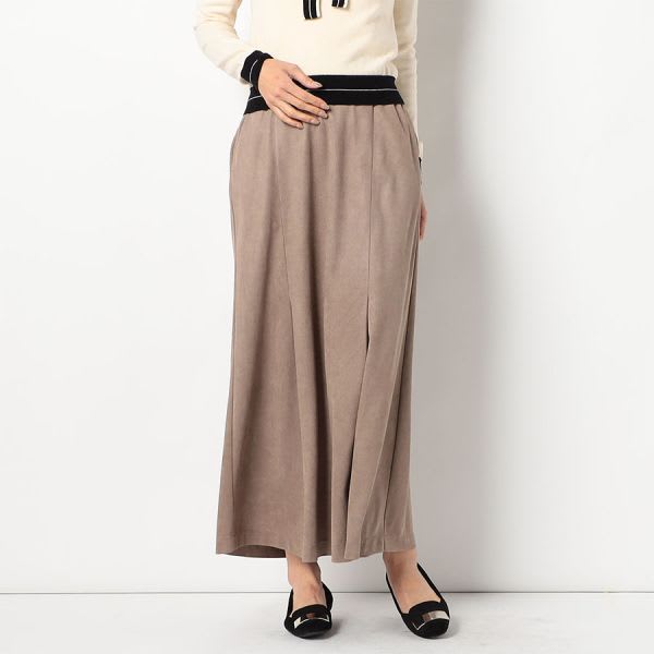 バックスリットがポイントのスカートです。ボウタイブラウスにラウンドトゥパンプスを合わせて、キレイめに。フレアスリーブニットにバレエシューズを合わせて、女性らしく着こなしてもステキですね。