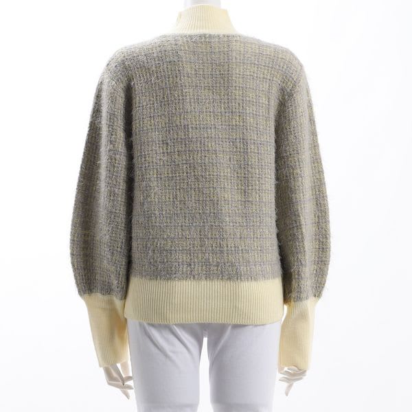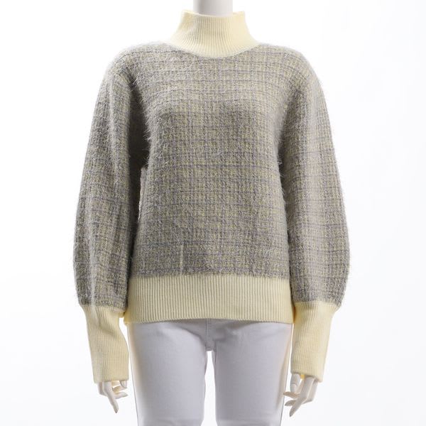 ツイード風デザインのハイネックニットです。デニムパンツにスニーカーを合わせて、カジュアルに。フレアスカートにバレエシューズを合わせて、女性らしく着こなしてもステキですね。