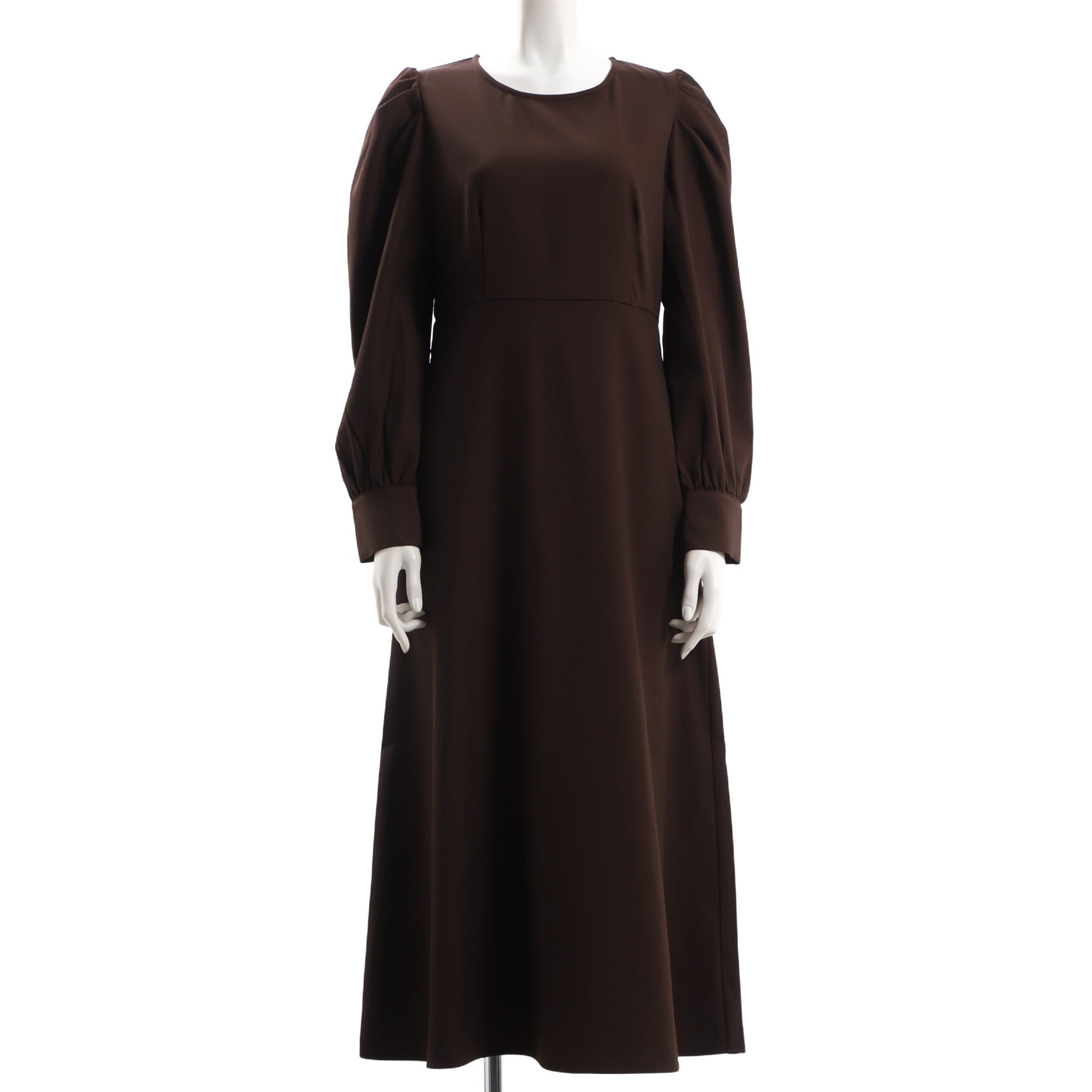 ボリュームのあるお袖がポイントになったフレアワンピース。小物には、レザーハンドバッグとパンプスで女性らしく、スクエアショルダーバッグとレザーショートブーツで辛さをプラスしてもいいですね。