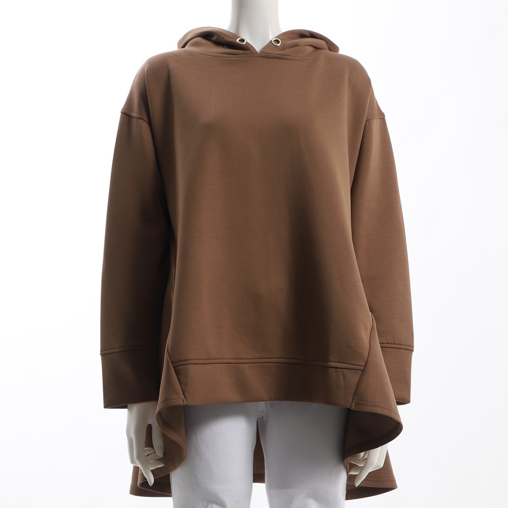 バックフレアダンボールパーカーです。デニムパンツとスニーカーを合わせてカジュアルに、タイトスカートとパンプスで女性らしい着こなしもいいですね。