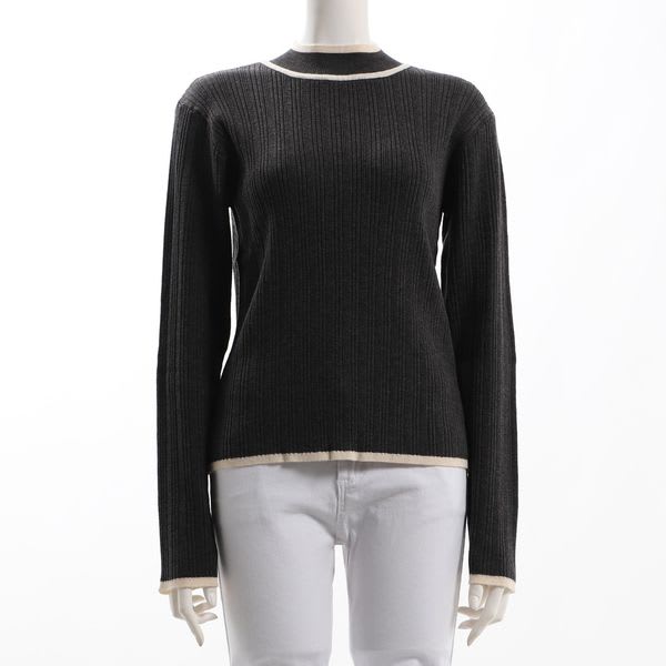 バイカラーデザインがポイントのハイネックニットです。ワイドパンツとスニーカーを合わせてカジュアルスタイルに、フレアスカートとパンプスを合わせて女性らしいスタイルもいいですね。