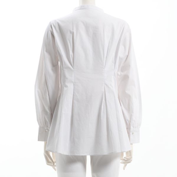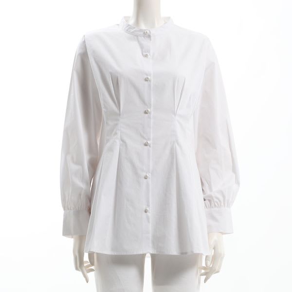 パールボタンとペプラムデザインが女性らしい印象のバンドカラーブラウスです。タイトスカートとパンプスを合わせて、キレイめな着こなしに。ジーンズとスニーカーを合わせて、カジュアルな着こなしもおすすめです◎
