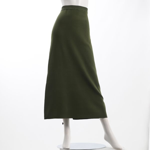 バックスリット入りのセミタイトニットスカート。フーディーパーカーを合わせてマニッシュな着こなしに、シャギーニットを合わせてフェミニンに着てもいいですね。