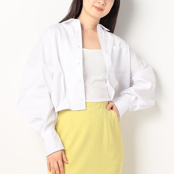 アウトポケットとタックデザインがポイントのシャツです。ワイドパンツとスニーカーを合わせて、ラフな着こなしに。タイトスカートとポインテッドトゥパンプスを合わせて、クールな着こなしもおすすめです◎