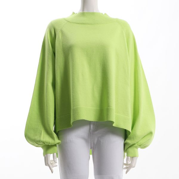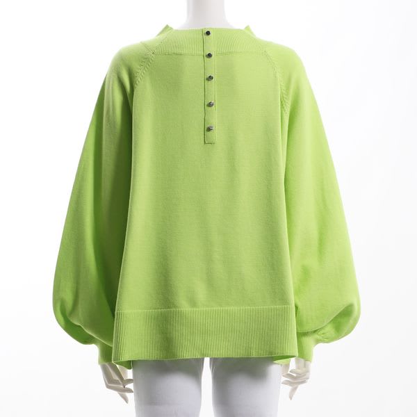 バックネックのボタンが特徴的なボリュームスリーブのハイゲージニットです。タイトスカートとアーモンドトゥパンプスを合わせていただくと、レディライクな印象のコーディネートになり、ワイドパンツとコインローファーを合わせていただくと、マニッシュな印象のコーディネートになります。