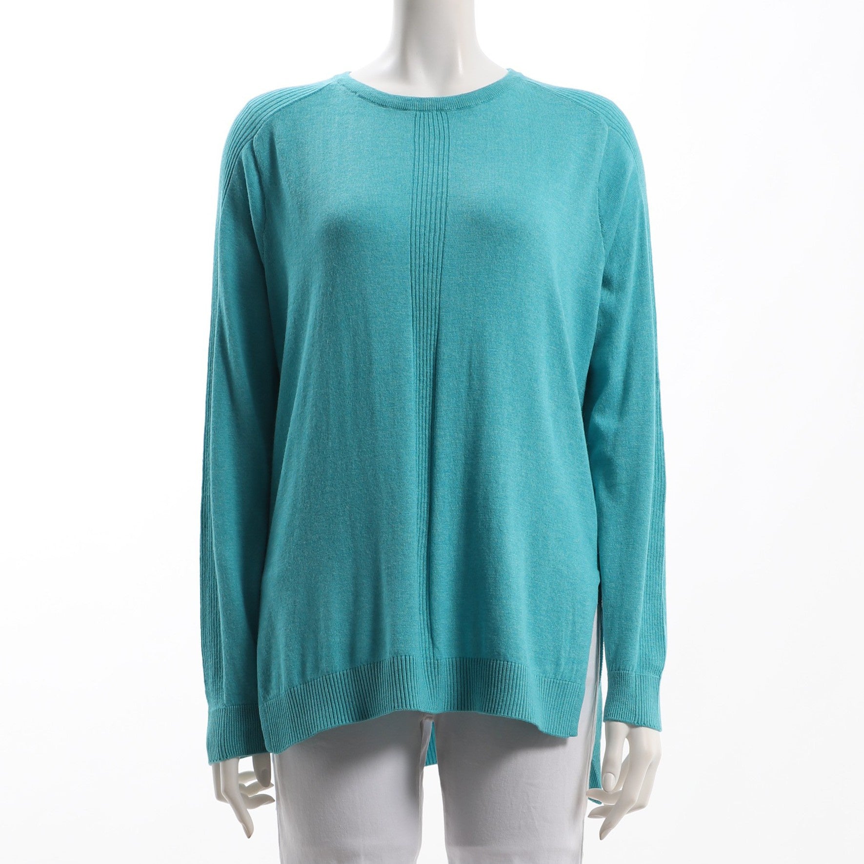 サイドスリットがポイントのクルーネックニット。ボトムスにはデニムパンツを合わせてカジュアルに、タイトスカートでレディライクにまとめてもいいですね。