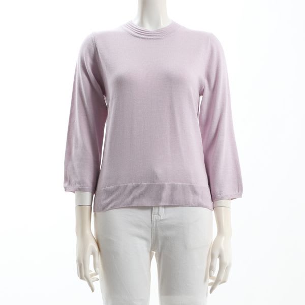 ネックラインのデザインがポイントのクルーネックニット。ボトムスにはワイドパンツを合わせてマニッシュな雰囲気に、フレアスカートでレディライクにまとめてもいいですね。