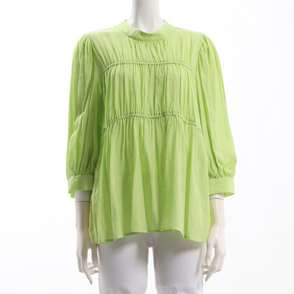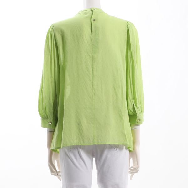 フロントのギャザーデザインが目を惹くブラウスです。デニムパンツにスニーカーを合わせて、カジュアルな着こなしに。テーパードパンツにビットローファーを合わせて、マニッシュに着こなしてもステキですね。