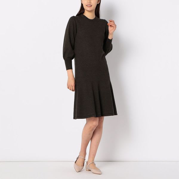 ボリュームスリーブニットワンピース