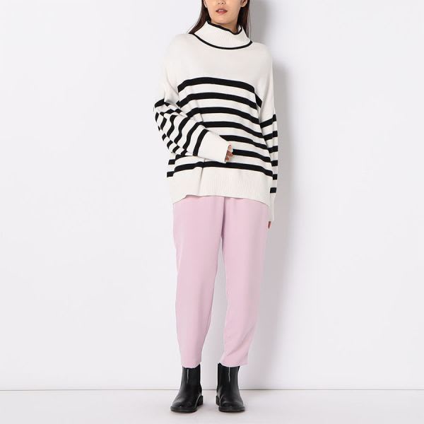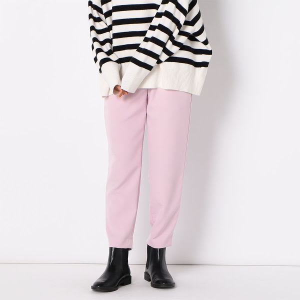 スッキリ見えするテーパードパンツ。脚長効果が抜群で、程よくゆとりのあるテーパードシルエットで、腰回りやヒップをカバーします。とろみブラウスと合わせてオフィスコーデに。またデザインブラウスと合わせたり、シンプルがゆえの着回しを楽しんでいただけるアイテムです。