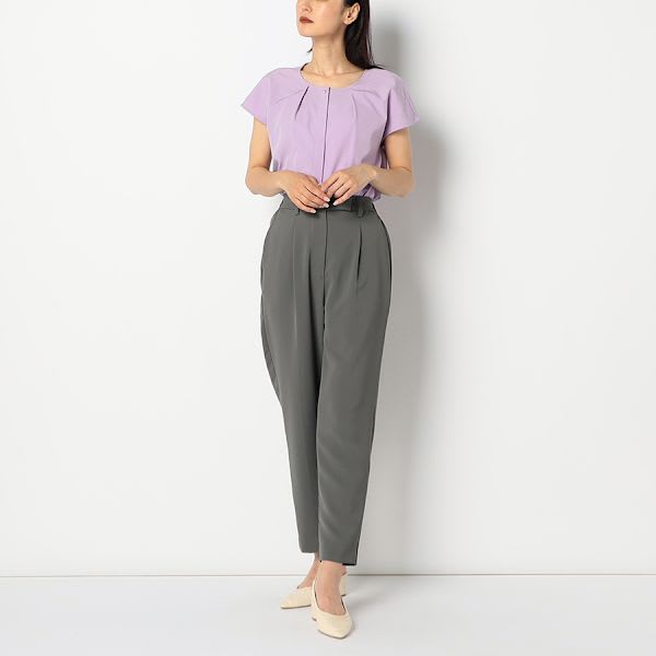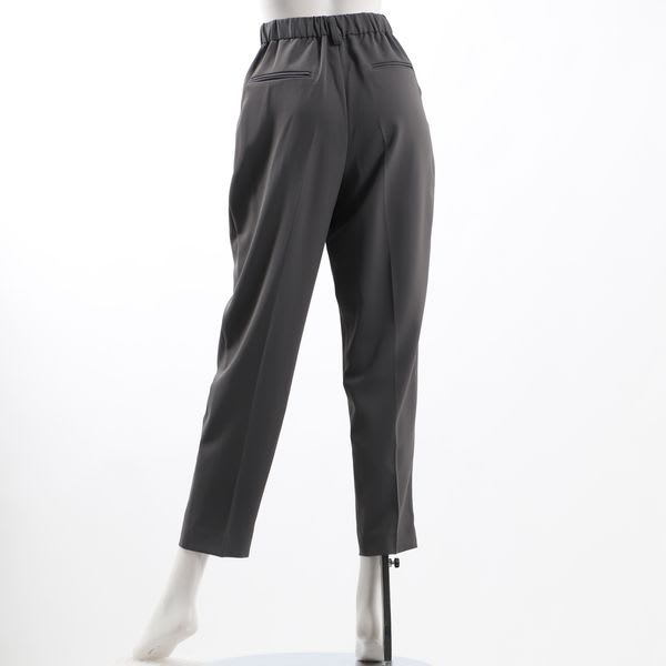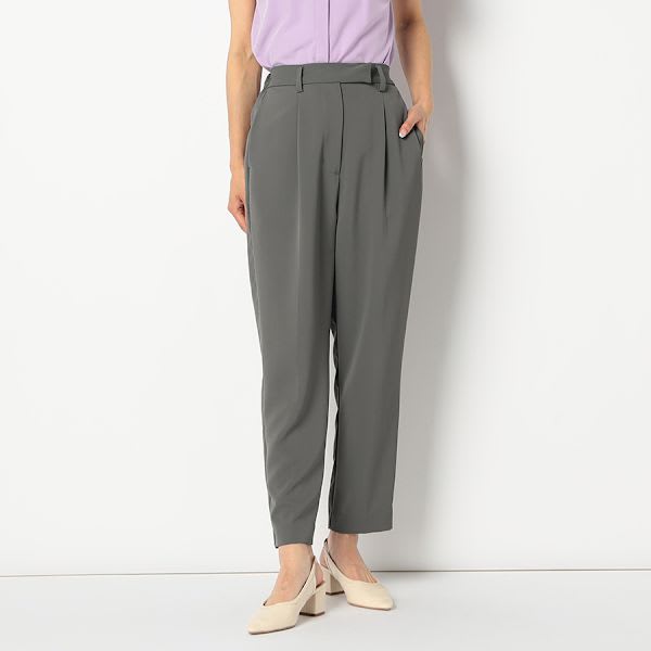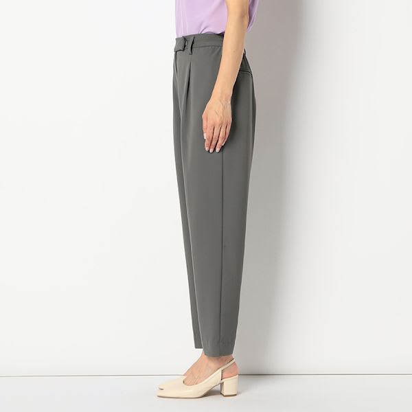 ウエスト一部ゴム仕様のタックテーパードパンツです。シャツとローファーを合わせて、マニッシュな着こなしに。ボウタイブラウスとパンプスを合わせて、レディライクな着こなしにしても◎