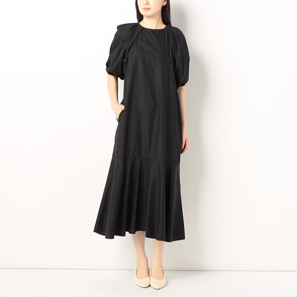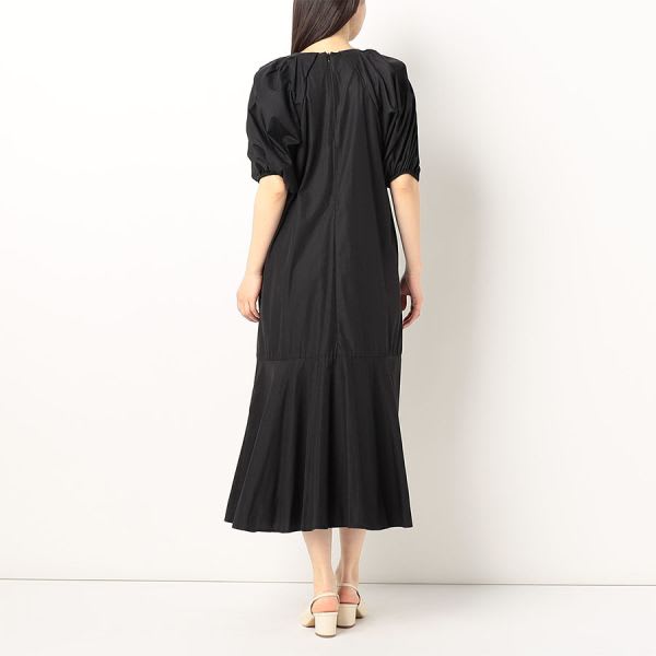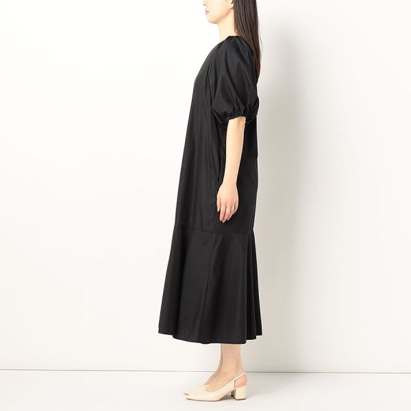 パフスリーブとマーメイドシルエットのデザインが女性らしさを演出してくれるワンピース。