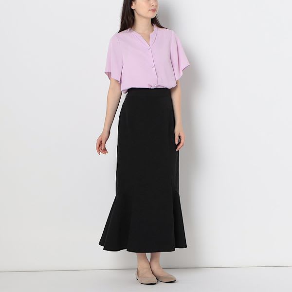 パールボタンがポイントのフレアスリーブブラウスです。テーパードパンツとポインテッドトゥパンプスを合わせた綺麗めシャープな着こなしや、プリーツスカートとバレエシューズを合わせたフェミニンな着こなしも良いですね。