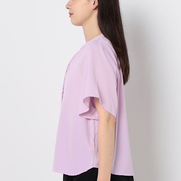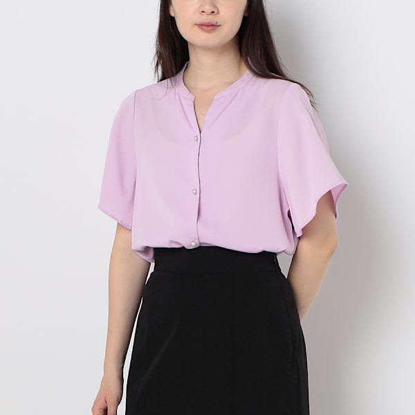 パールボタンフレアスリーブブラウス