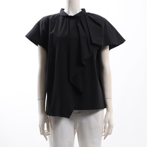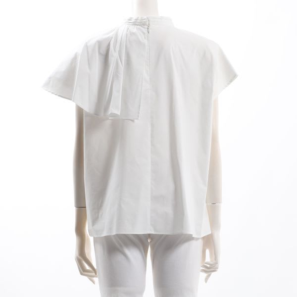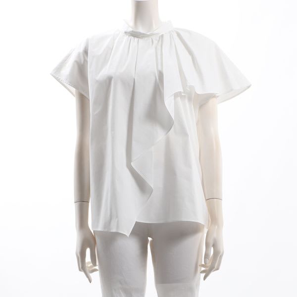 袖から流れるアシンメトリーなフリルがポイントのブラウスです。タイトスカートとラウンドトゥパンプスを合わせた綺麗めな着こなしや、デニムパンツとスニーカーを合わせたカジュアルな着こなしもいいですね。