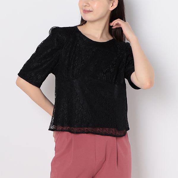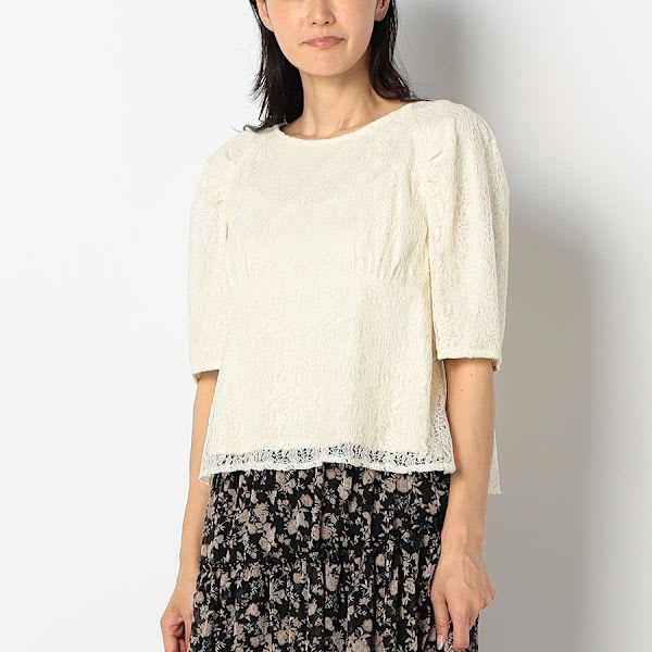 切り替えデザインレースブラウス