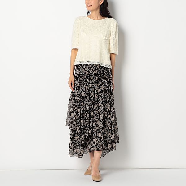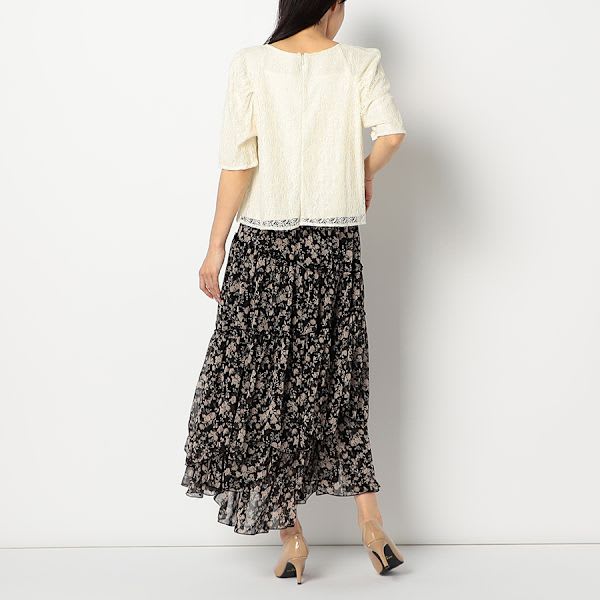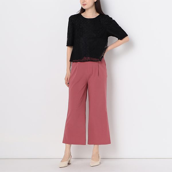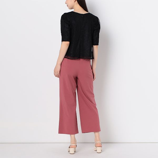 切り替えデザインがポイントのレースブラウスです。プリーツスカートとバレエシューズを合わせて、大人可愛い着こなしに。ワイドパンツとスニーカーを合わせて、ラフな着こなしもいいですね。