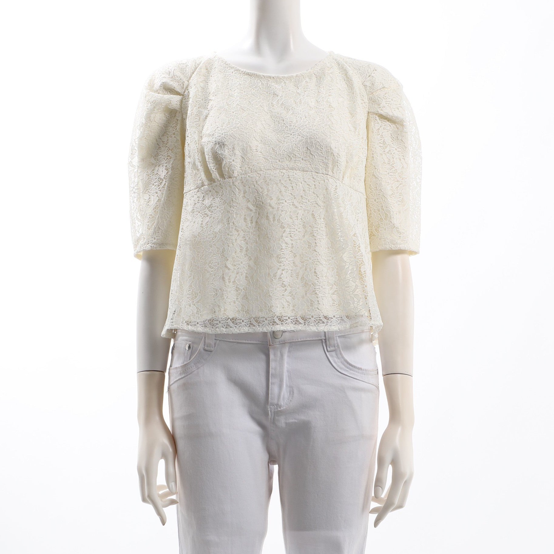 切り替えデザインレースブラウス
