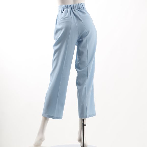 センターシーム入りストレートパンツ。キャンディースリーブブラウスを合わせてエレガントな着こなしに、ボーダーカットソーを合わせてラフな着こなしもいいですね。