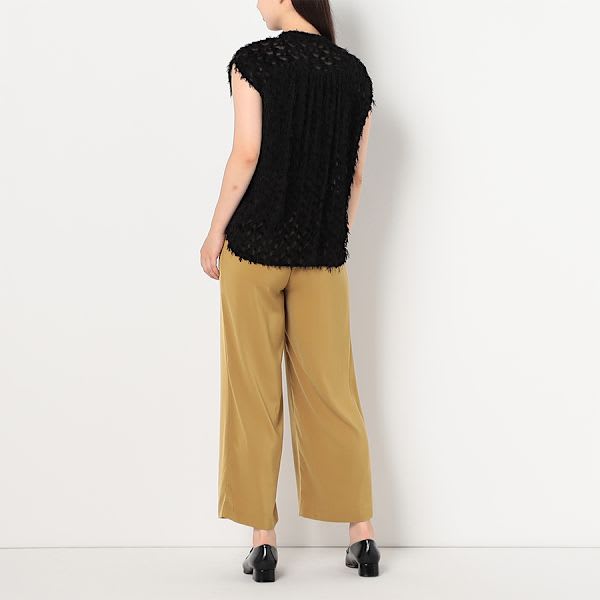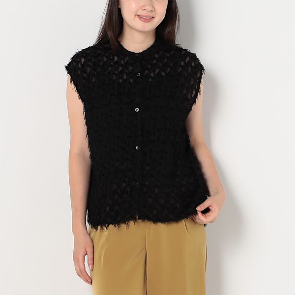 起毛感のあるバンドカラーブラウスです。タイトスカートとアーモンドトゥパンプスを合わせた綺麗めな着こなしや、デニムパンツとスニーカーを合わせたカジュアルな着こなしも素敵ですね。