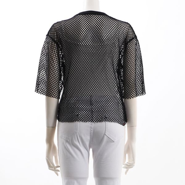 透かし編みで程よい抜け感と着回しが楽しめるメッシュニット。クルーネックで首周りはスッキリ、見た目も着た感も涼しげで暑い時期にご活躍頂けるサマーニットです。