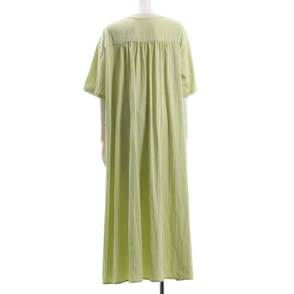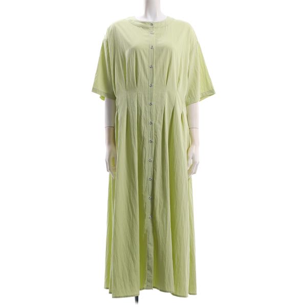 ウエスト部分にタックデザインを施したメリハリのあるシルエットがポイントのワンピース。さらっと軽い生地感と、シルバーのボタンがさりげないアクセントに◎小物は、ラフィアバッグとトングサンダルでカジュアルに、ハーフムーンバッグとパンプスを合わせてお出かけスタイルもいいですね。