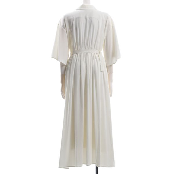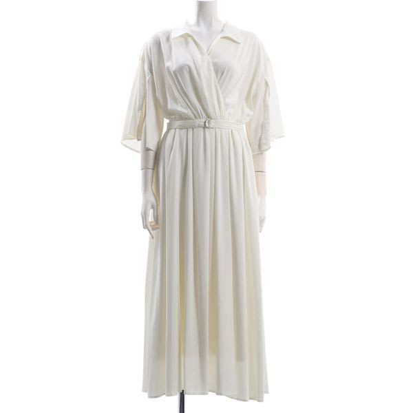 袖のスリットとカシュクールデザインが女性らしさを引き立ててくれる、ベルト付きワンピース。しなやかな動きのでる、柔らかで落ち感のある生地を使用。同素材の付属ベルトをつけることで、よりメリハリのある上品見えするシルエットに仕上げました。きちんと感を演出してくれる襟付きデザインなので、デートやお呼ばれスタイルにもおすすめです。