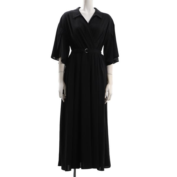 袖スリットカシュクールデザインベルト付きワンピース