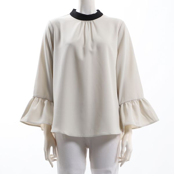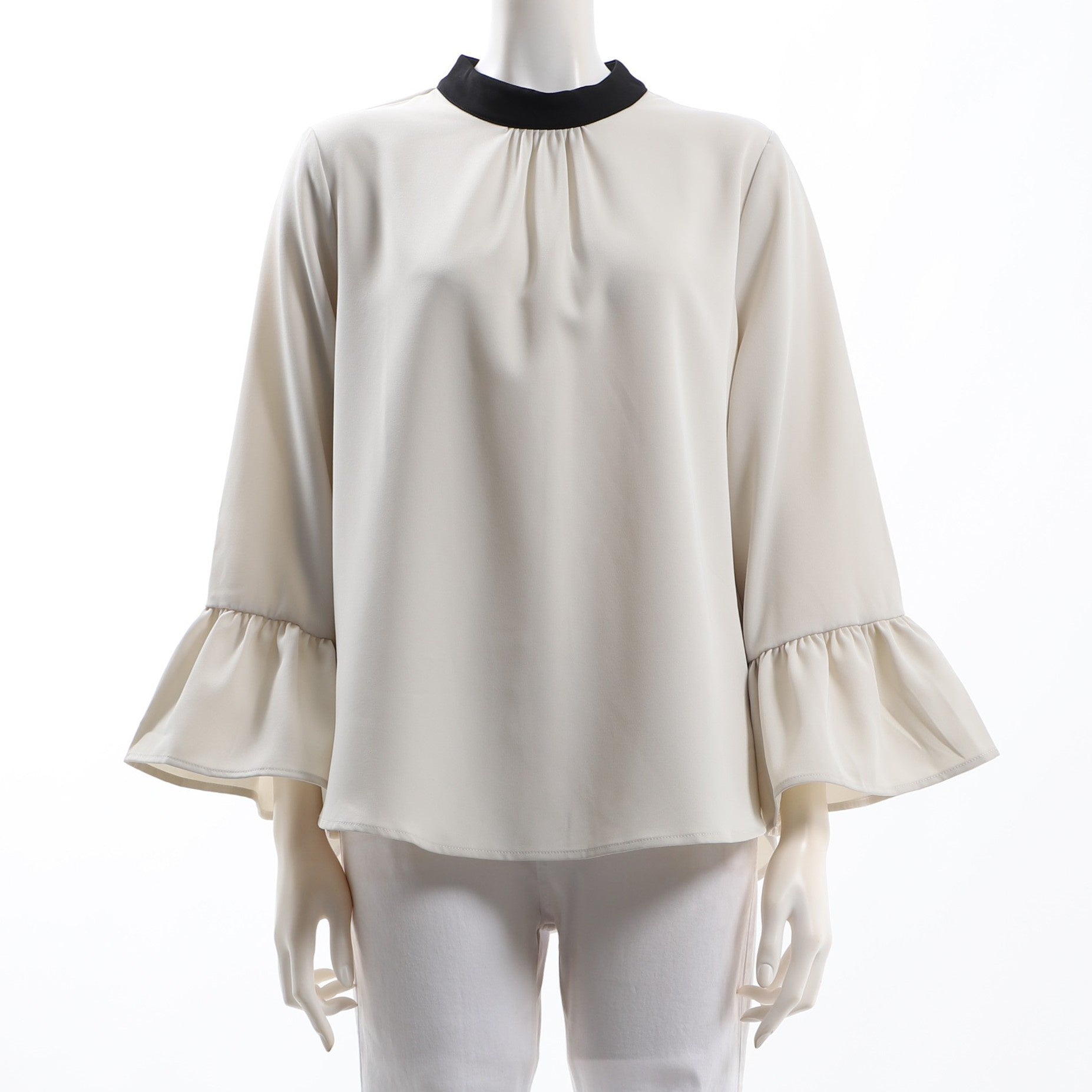 フレア袖がポイントのバイカラーブラウスです。Aラインスカートとバレエシューズを合わせたフェミニンな着こなしや、テーパードパンツとポインテッドトゥパンプスを合わせたシャープな着こなしも素敵ですね。