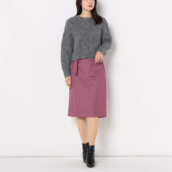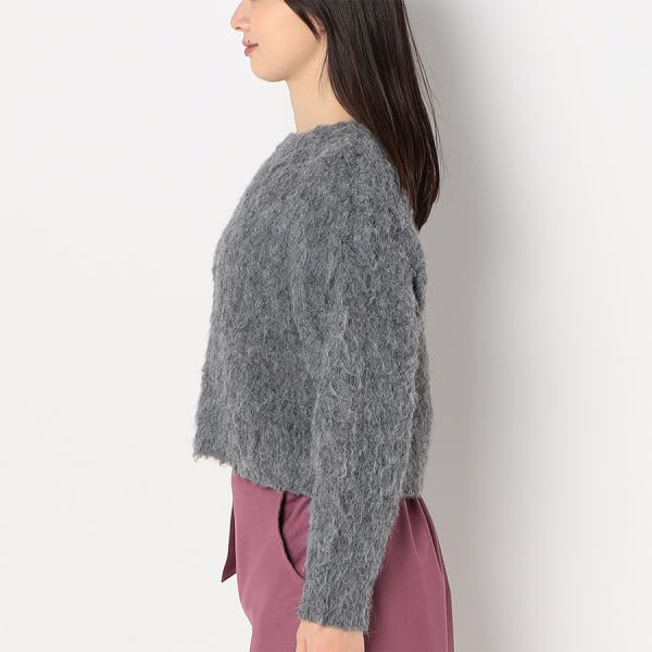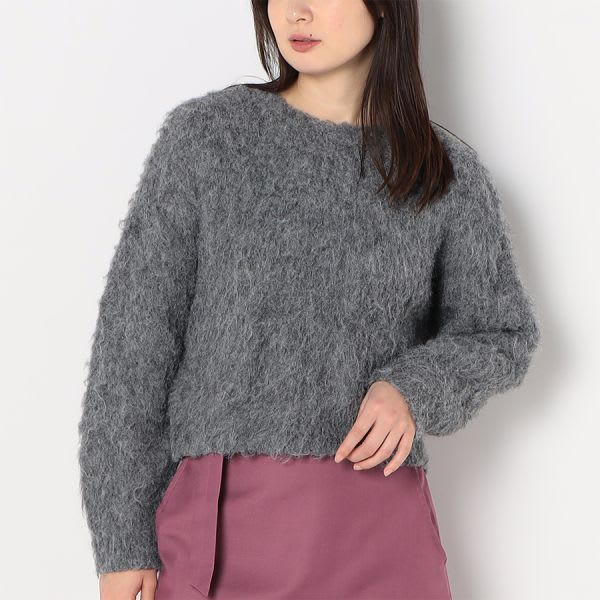 ふんわり感がポイントのニットです。フレアスカートとショートブーツを合わせてレディライクなスタイルに、デニムパンツとスニーカーを合わせてカジュアルなスタイルに仕上げていただくのも素敵ですよ。 ※商品の特性上毛が抜けやすくなっています