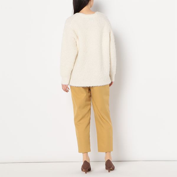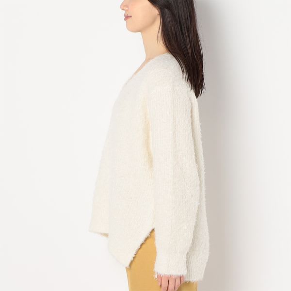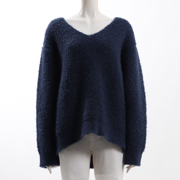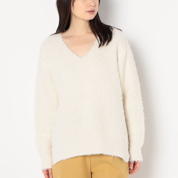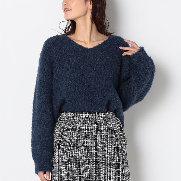 着回していただきやすいVネックニットです。1枚で着るのはもちろん、タートルネックやシャツをレイヤードしても◎ですよ。デニムパンツにスニーカーを合わせて、カジュアルに。フレアスカートにレースアップシューズを合わせて、女性らしく着こなしてもステキです。