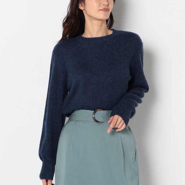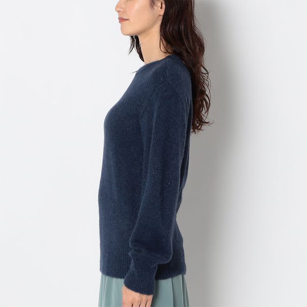 ラメが目を惹くクルーネックニットです。デニムパンツにスニーカーを合わせて、カジュアルに。プリーツスカートにバレエシューズを合わせて、大人可愛く着こなしてもステキですよ。