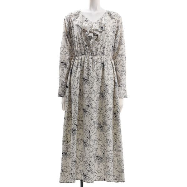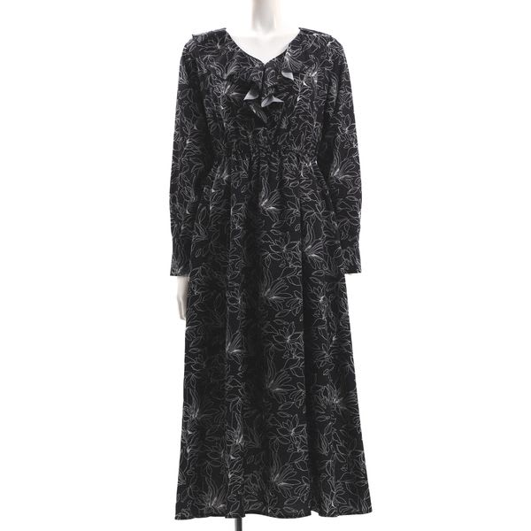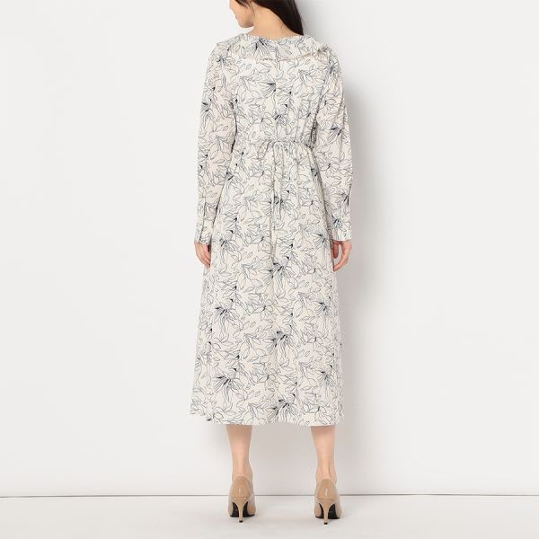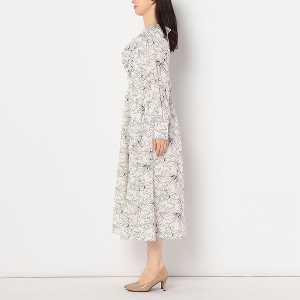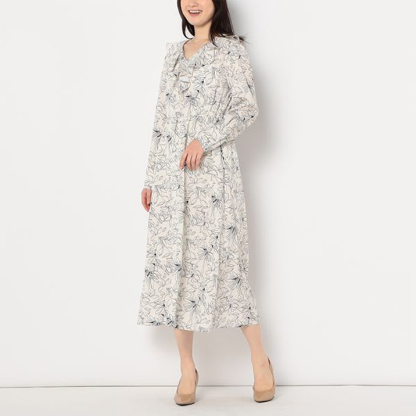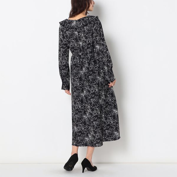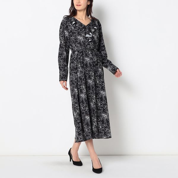 フリルアクセント総柄ワンピース