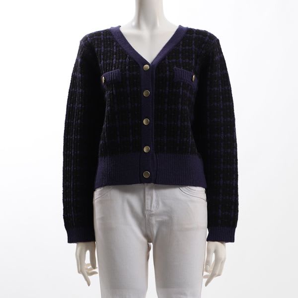 ゴールドボタンがアクセントのVネックカーディガンです。タイトスカートとヒールブーツを合わせて、大人可愛い着こなしに。ジーンズとスニーカーを合わせて、カジュアルな着こなしもおすすめです◎