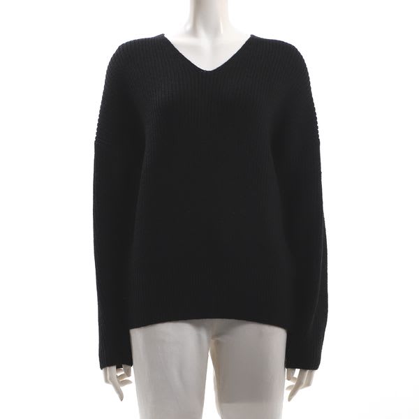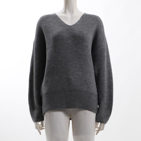 ドロップショルダーのVネックニットです。テーパードパンツとパンプスを合わせて、キレイめな着こなしに。ギャザースカートとスニーカーを合わせて、リラクシーな着こなしにしても◎