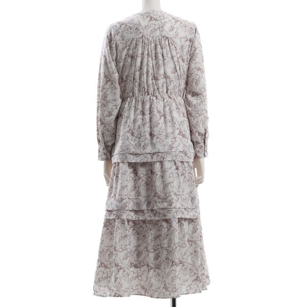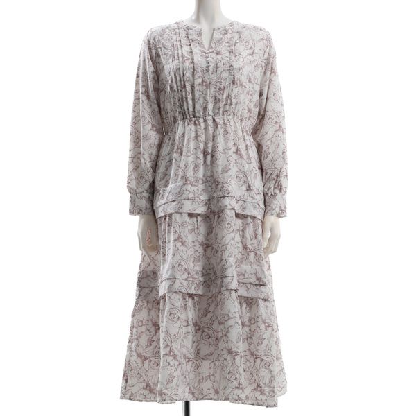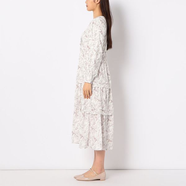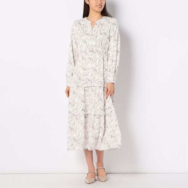 フロントのピンタックとスカート部分の切り替えデザインが特徴的な花柄ワンピースです。ラウンドトゥパンプスを合わせて、上品に。スニーカーを合わせて、カジュアルダウンさせても素敵ですよ。