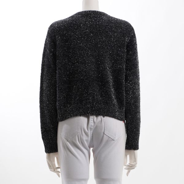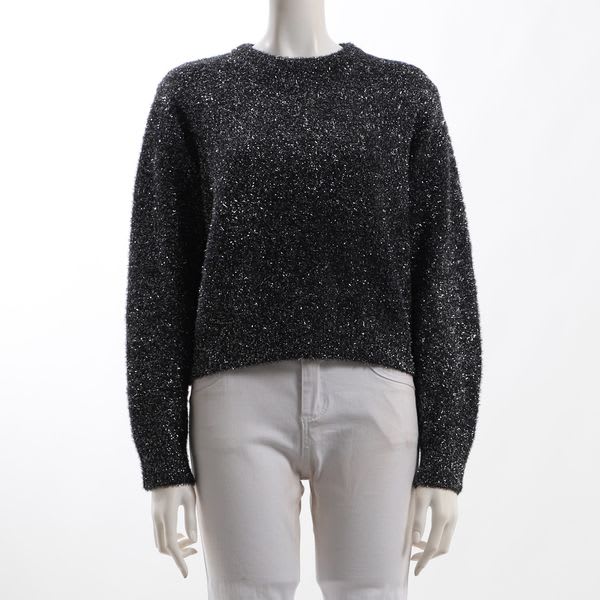 ラメ糸混素材のニットです。フレアスカートとショートブーツを合わせてレディライクなスタイルに、デニムパンツとスニーカーを合わせてカジュアルなスタイルに仕上げていただくのもオススメですよ。