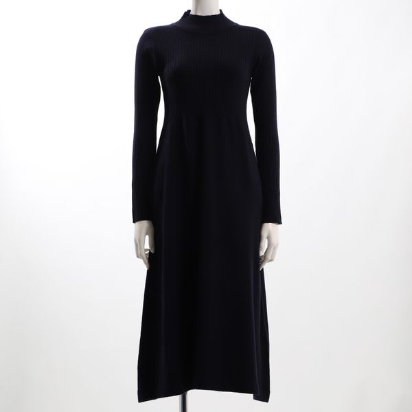 切り替えがポイントのリブニットワンピースです。お足元は、ラウンドトゥパンプスを合わせて、キレイめに。スニーカーを合わせて、カジュアルに着こなしてもステキですね。
