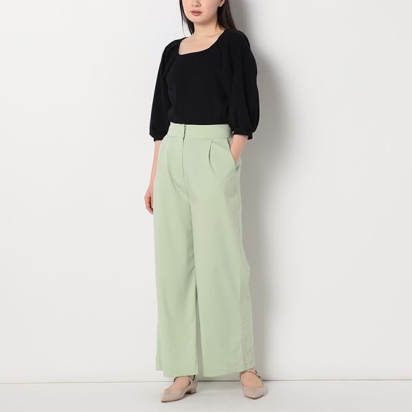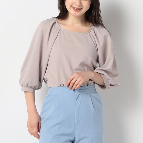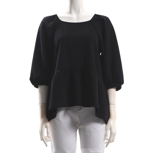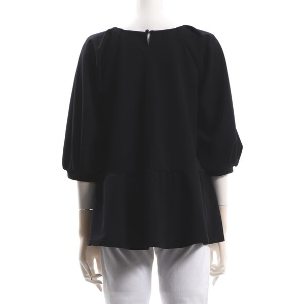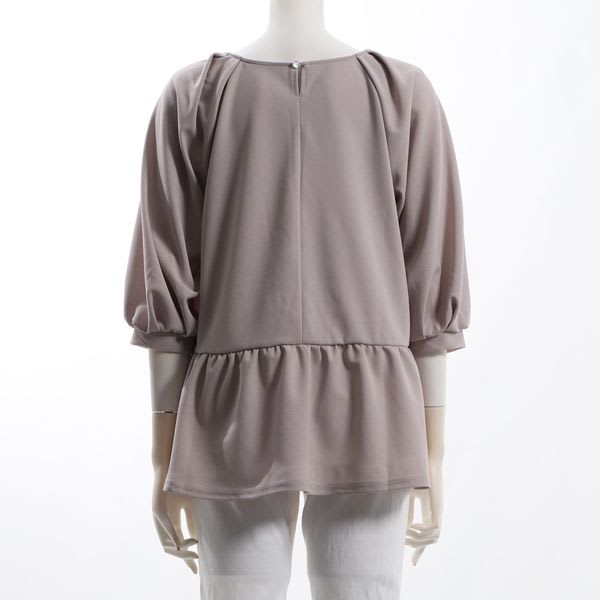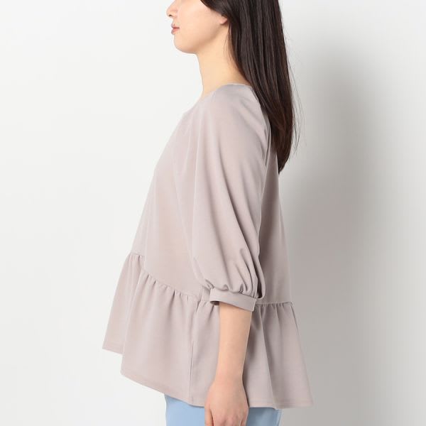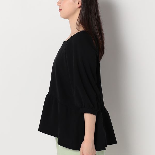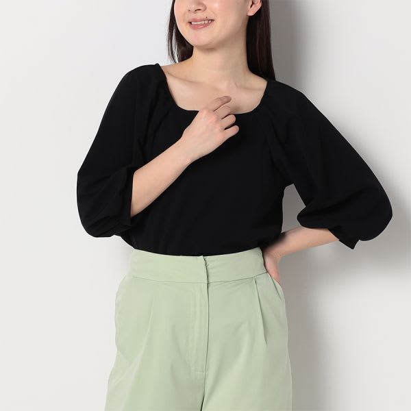 スクエアネックのペプラムブラウスです。テーパードパンツとパンプスを合わせてキレイめスタイルに、デニムパンツとスニーカーを合わせてカジュアルなスタイルに仕上げていただくのも素敵ですよ。