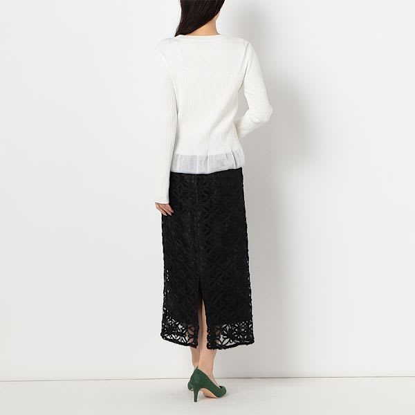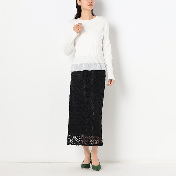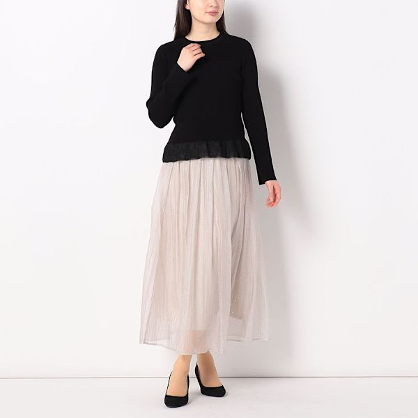 裾切り替えデザインリブニット
