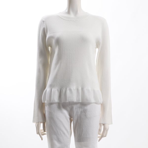 裾の切り替えデザインがポイントのリブニットです。タイトスカートとショートブーツを合わせてレディライクなスタイルに、デニムパンツとスニーカーを合わせてカジュアルなスタイルに仕上げていただくのも素敵ですよ。