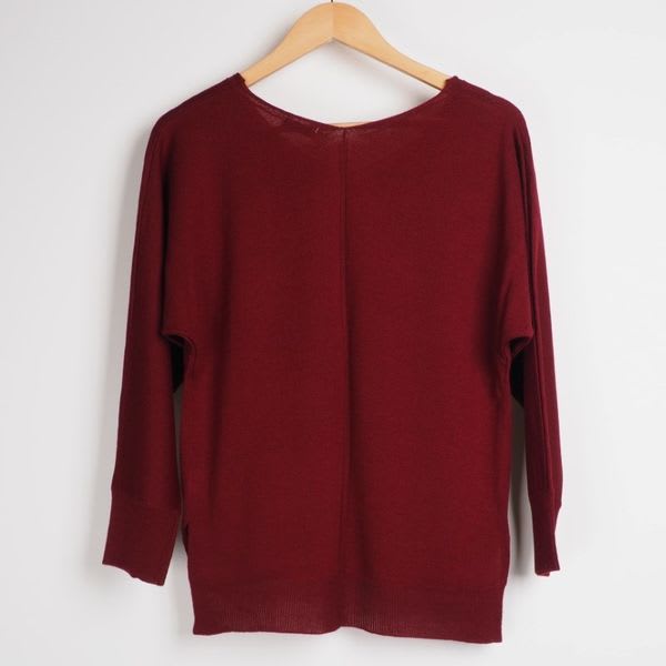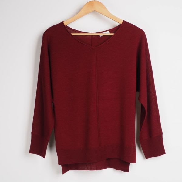 前後Vネックのサイドスリット入りニット。フレアスカートと合わせてフェミニンに、タックパンツと合わせてマニッシュなコーデも◎