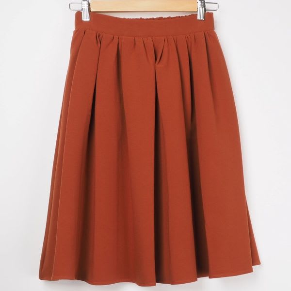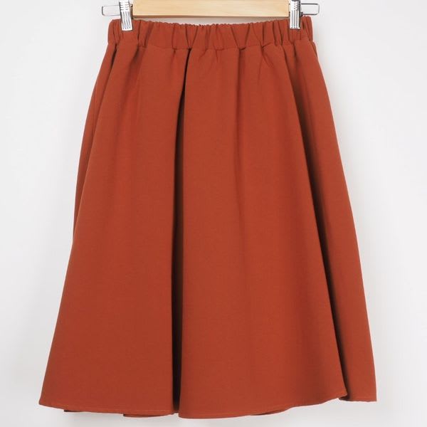 「ボリュームのあるフレアスカートでシルエットがとても可愛かったです。色も秋らしくて、地味すぎず派手すぎず、トップスも合わせやすくて 良かったです。丈は膝が少し隠れるくらいで、履きやすかったです。でも、ウエストが少し大きくて、下がってきてしまうので、動くとトップスが出てきてしまいました。」